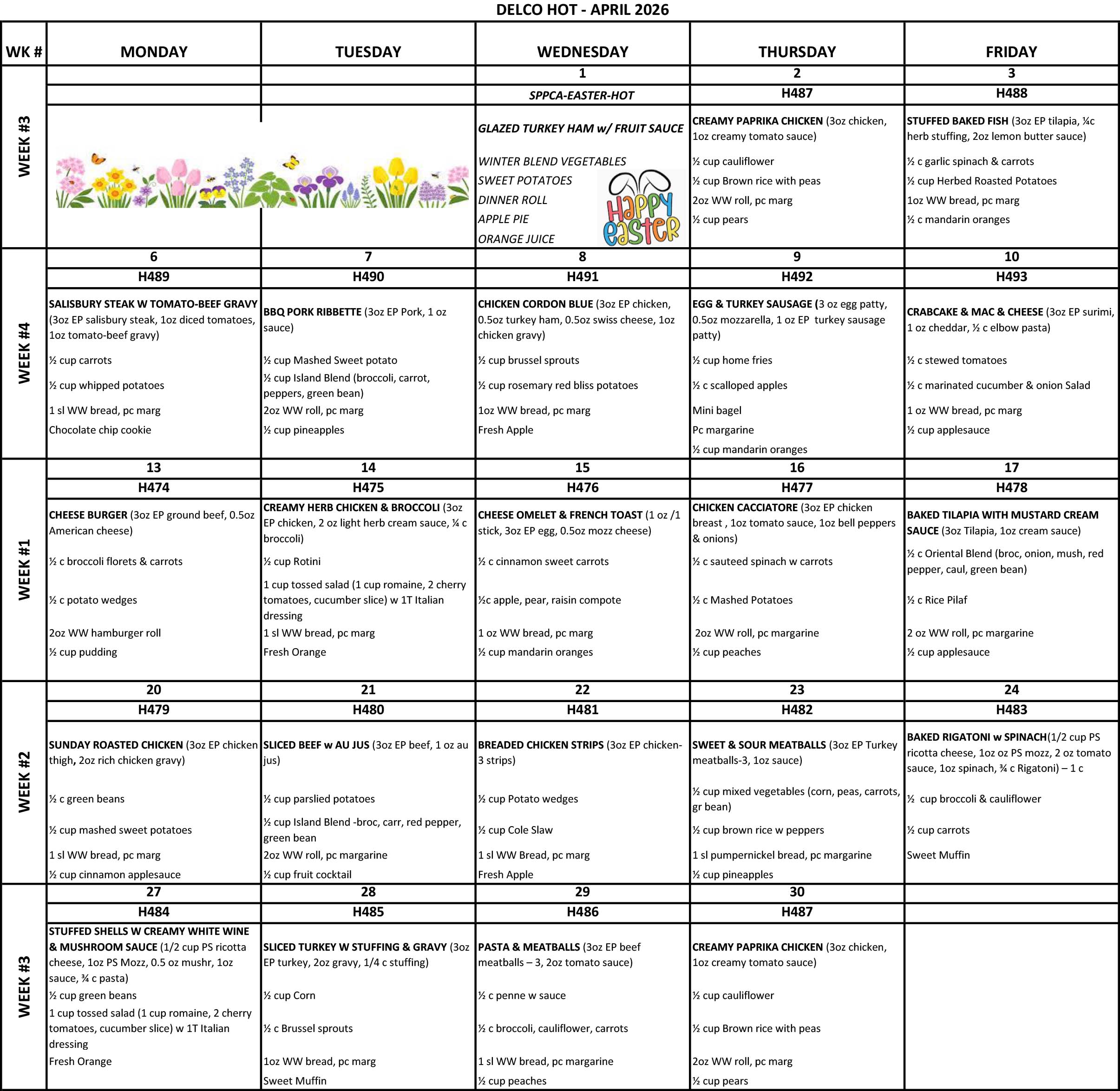 - Wednesday 4/1: Easter & Passover Luncheon 11:30 am – 1:30 pm